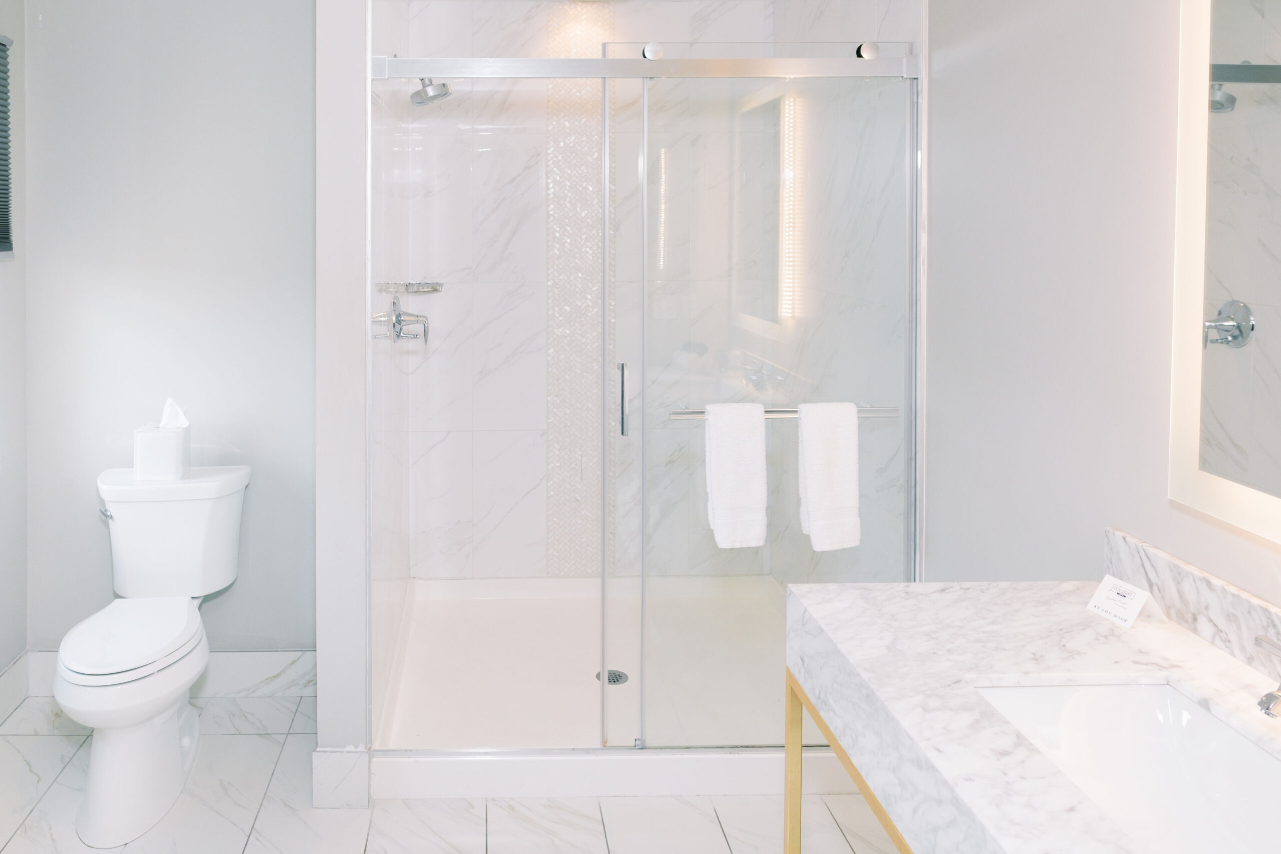 Rainfall shower & marble vanity